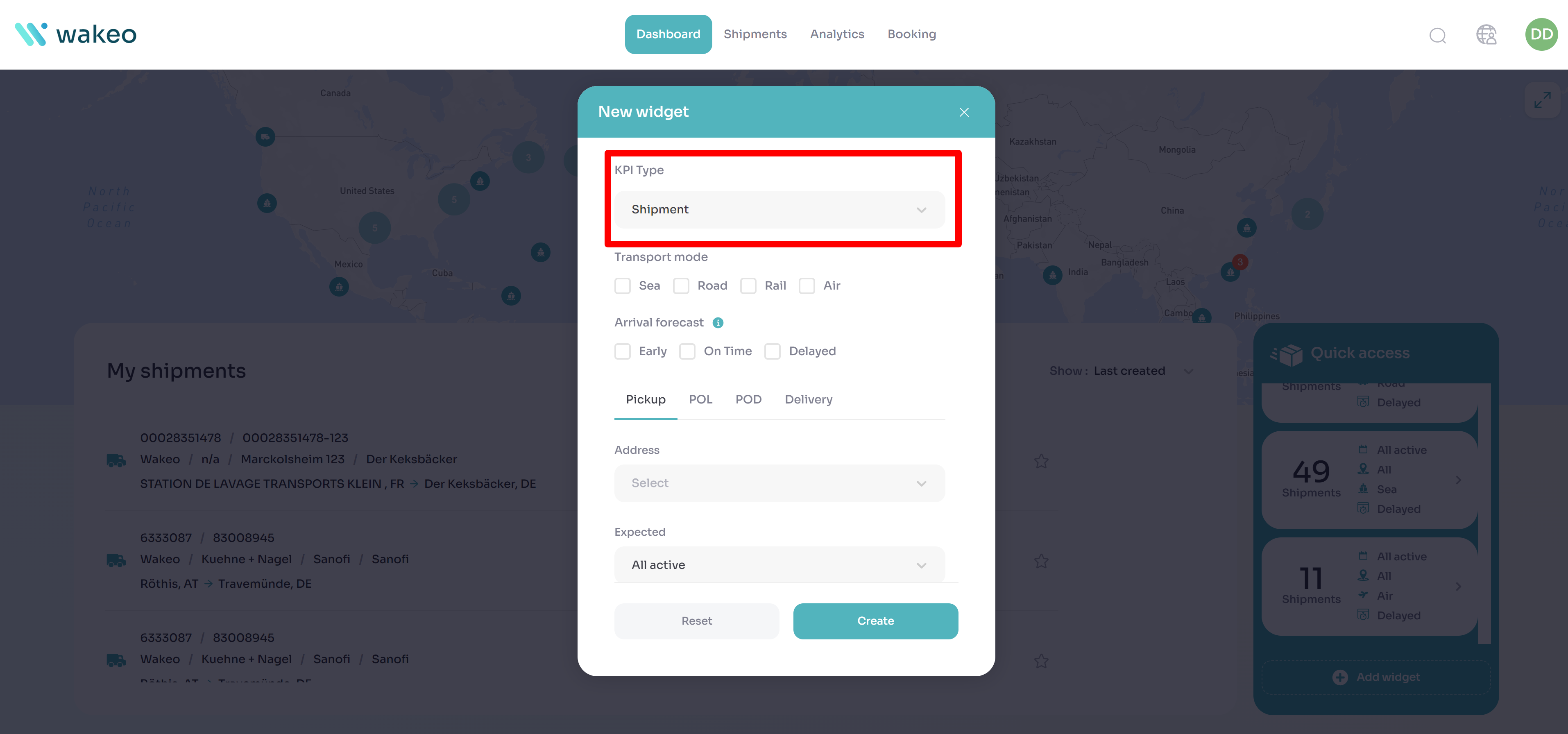 Sie können den Typ des Leistungsindikators auswählen: „Sendungen“ oder „CO2-Fußabdruck“.