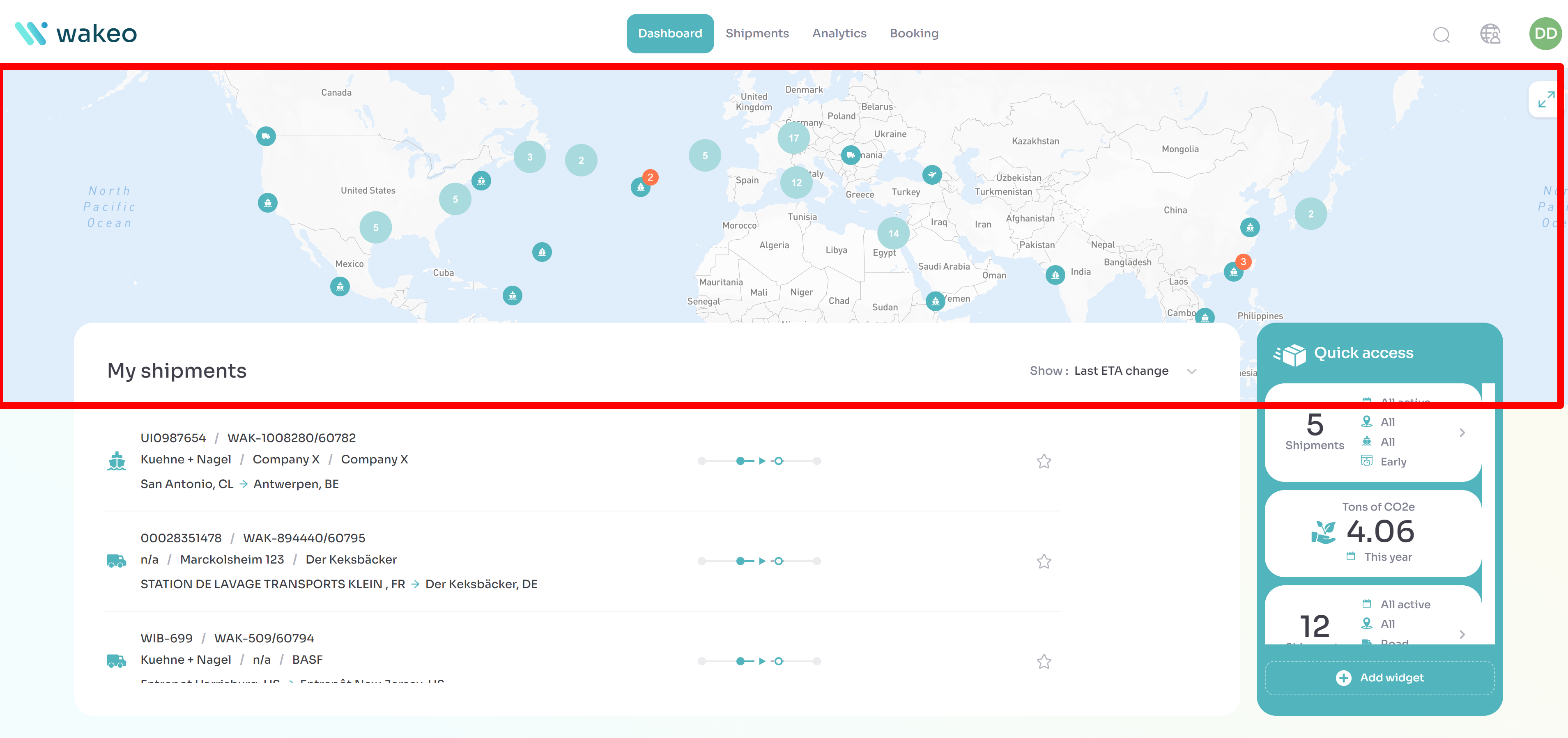 Auf der Seite „Dashboard“ steht eine Karte aller aktiven Sendungen zur Verfügung.
