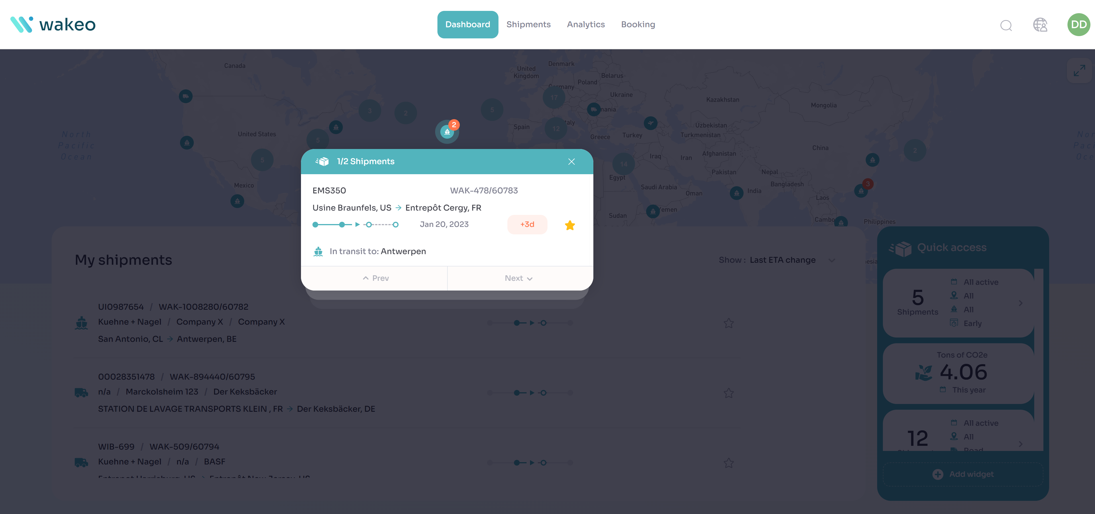 Sie können von einer Sendung zur anderen navigieren und deren Details einsehen, indem Sie auf die Sendungsverfolgungsreferenz klicken.