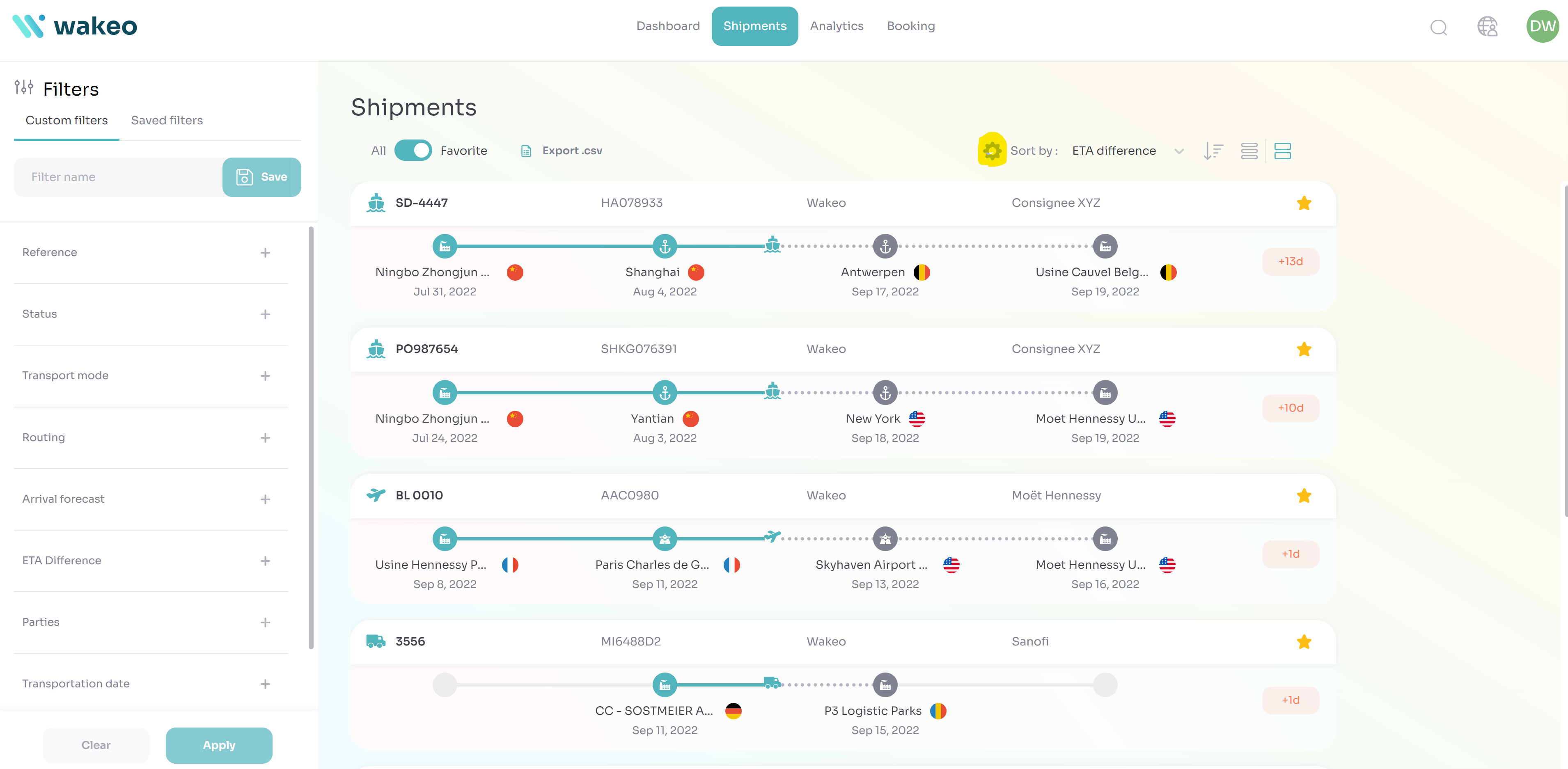 Ab sofort können Sie die Stakeholder/Referenzen (Absender, Empfänger, Absender, Spediteur) direkt in der Sendungsliste in Wakeo anzeigen.